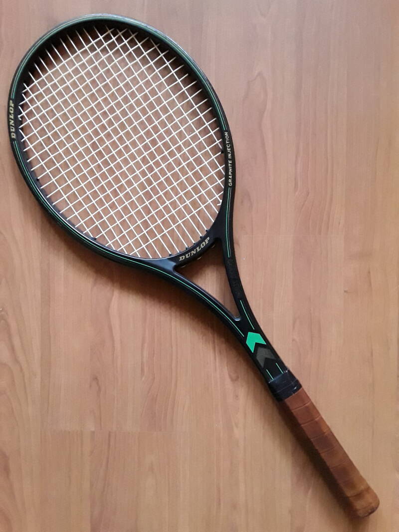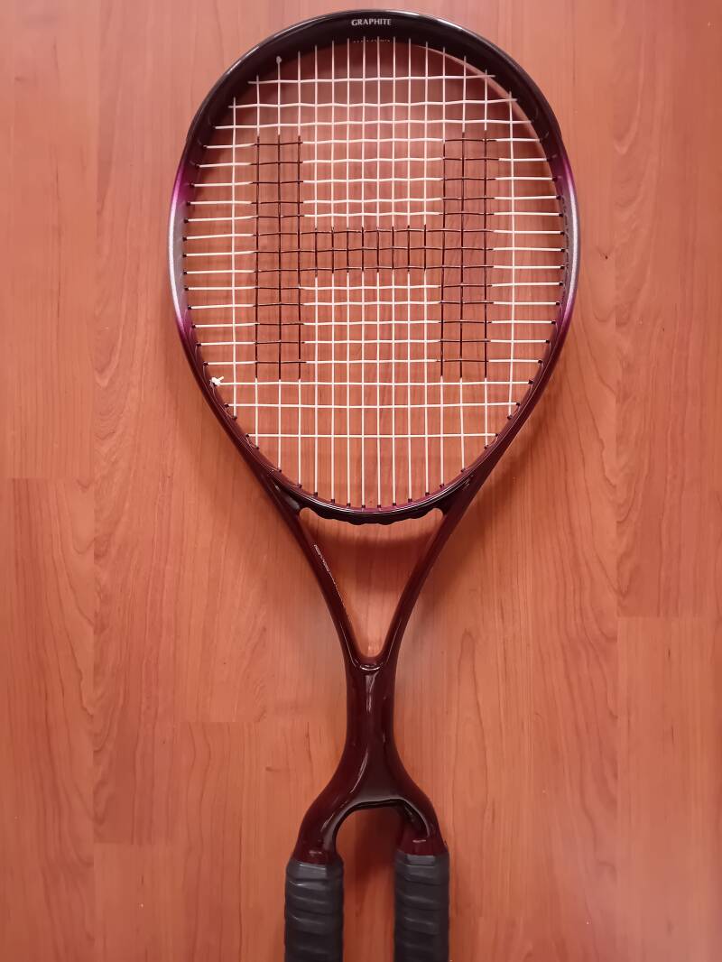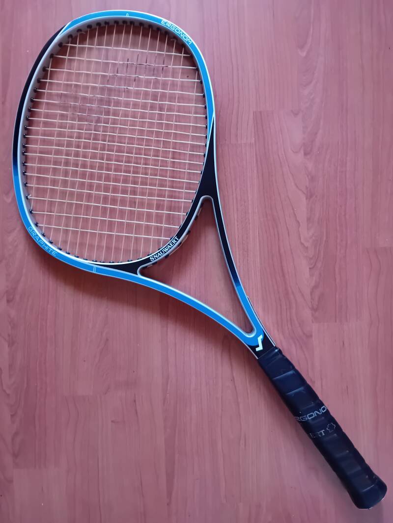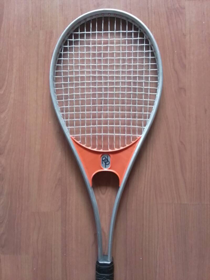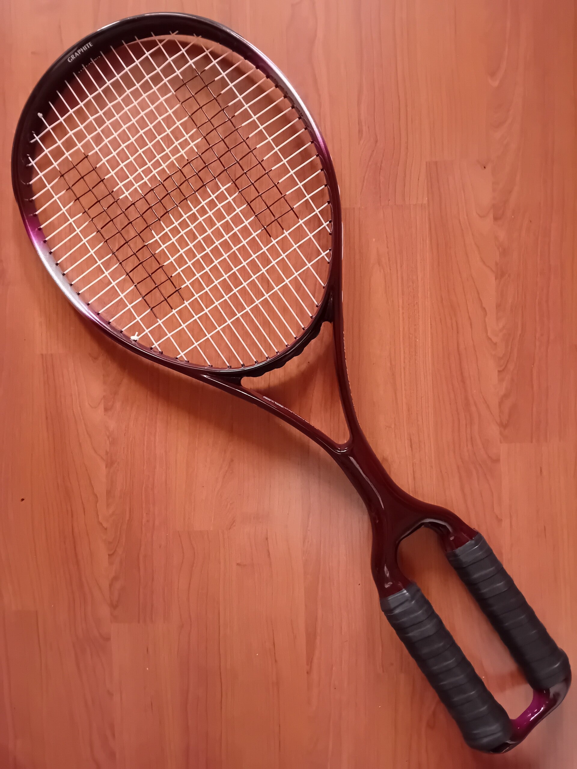 The Biosports Gripper (1984) is a vintage tennis racket notable for its ergonomically curved handle, designed to improve grip and reduce strain on the wrist. This innovative design aimed to enhance comfort and control during play. Originally intended for active use on the court, the Gripper has become a rare collector’s item due to its unique design and limited production.