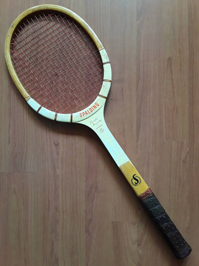 The Bancroft Super Winner (1941) is a vintage wooden tennis racket produced by the American Bancroft Sporting Goods Company, founded in 1882 by Frederick J. Bancroft in Pawtucket, Rhode Island. Bancroft was a pioneer in wooden racket production, using high-quality maple and ash wood from Vermont. In 1915, the company patented its three-piece laminated construction, enhancing both durability and playability. The Super Winner was one of their most popular models during the 1930s and 1940s, valued for its balance and control. While not originally associated with professional players, it remains a sought-after collector’s item due to its historical significance and Bancroft’s reputation as one of the oldest racket makers in the U.S.