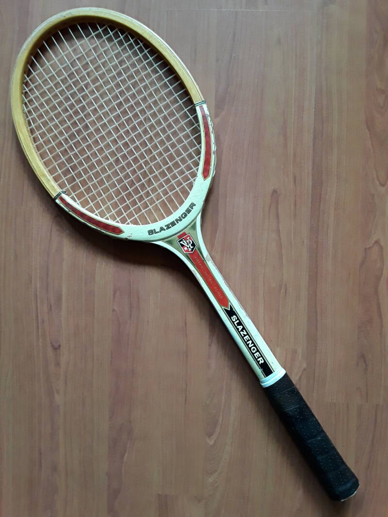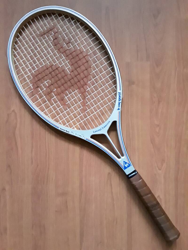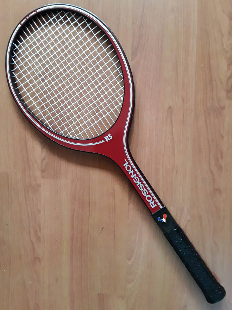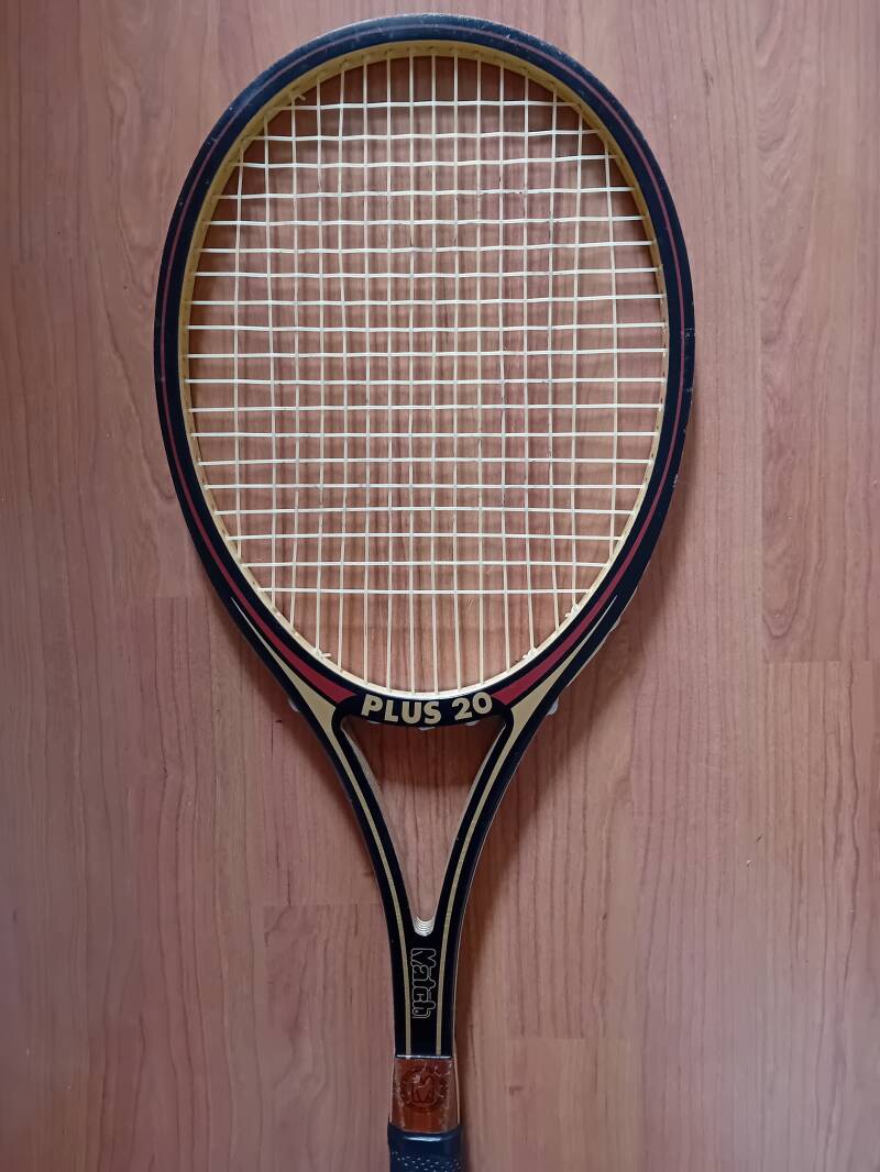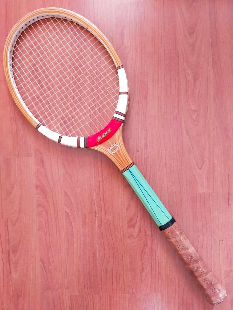 The Adidas Nastase Club (1984) is a vintage wooden racket associated with Ilie Năstase, featuring an open-heart design with the colors of the Romanian flag. Known for its reliable balance and classic design, it illustrates Adidas’s continued presence in the wooden racket era.