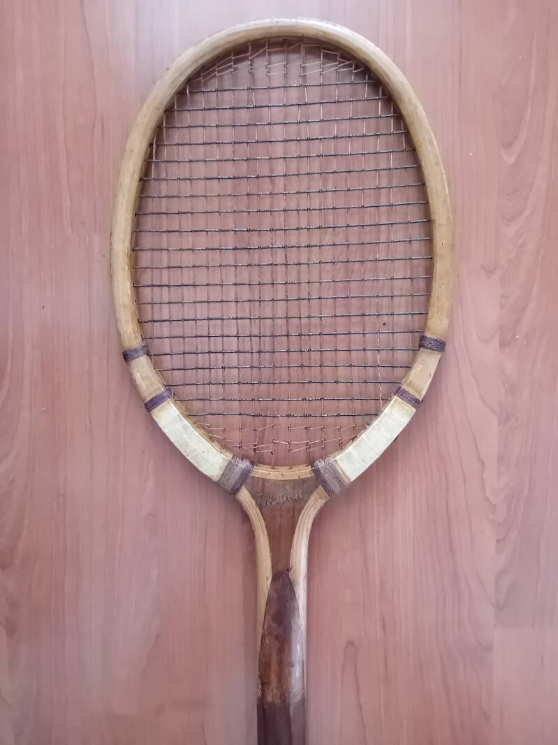 The F.H. Ayres (1878) is one of the very first wooden lawn tennis rackets. It's made by the English company F.H. Ayres, known in the late 19th century for its high-quality craftsmanship, it represents the design and skill of early tennis racket makers.
