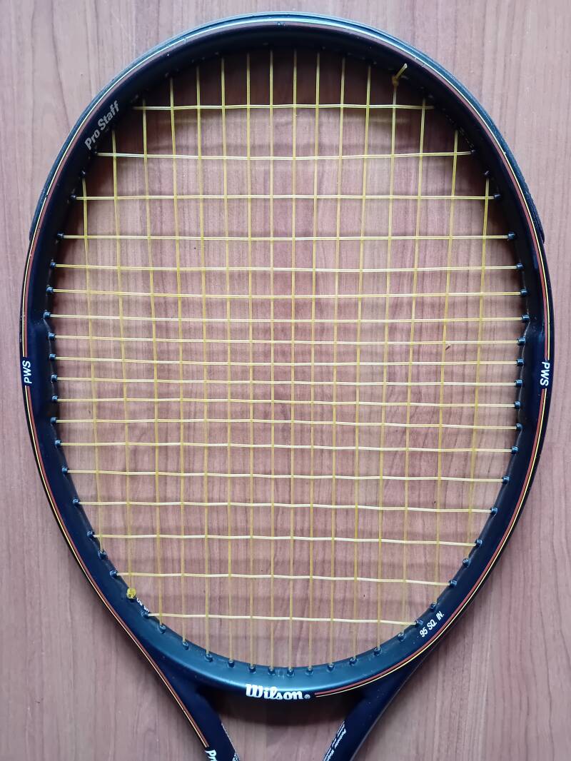 The Wilson Pro Staff Misdize (85 sq. in.), introduced in 1987, is a legendary tennis racquet celebrated for its precision, control, and feel. Famously used by top players such as Pete Sampras, Stefan Edberg, and Jim Courier, it features a sleek, classic design with a medium head size, thin beam, and tight string pattern, offering exceptional accuracy and all-court performance. Its combination of superior craftsmanship, timeless style, and professional-level playability made the Pro Staff Classic a favorite among elite players of the era. This iconic racquet remains celebrated for its influence on modern tennis and its connection to some of the sport’s greatest champions.