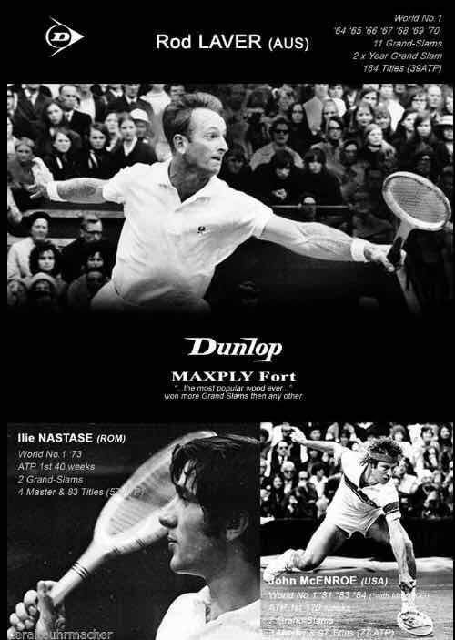 This page showcases a selection of historic tennis rackets alongside the players who made them famous. From classic wooden designs to innovative metal and composite models, each racket tells a story of skill, style, and evolution. The images highlight both the craftsmanship of the equipment and the legendary figures who wielded them on courts past and present.